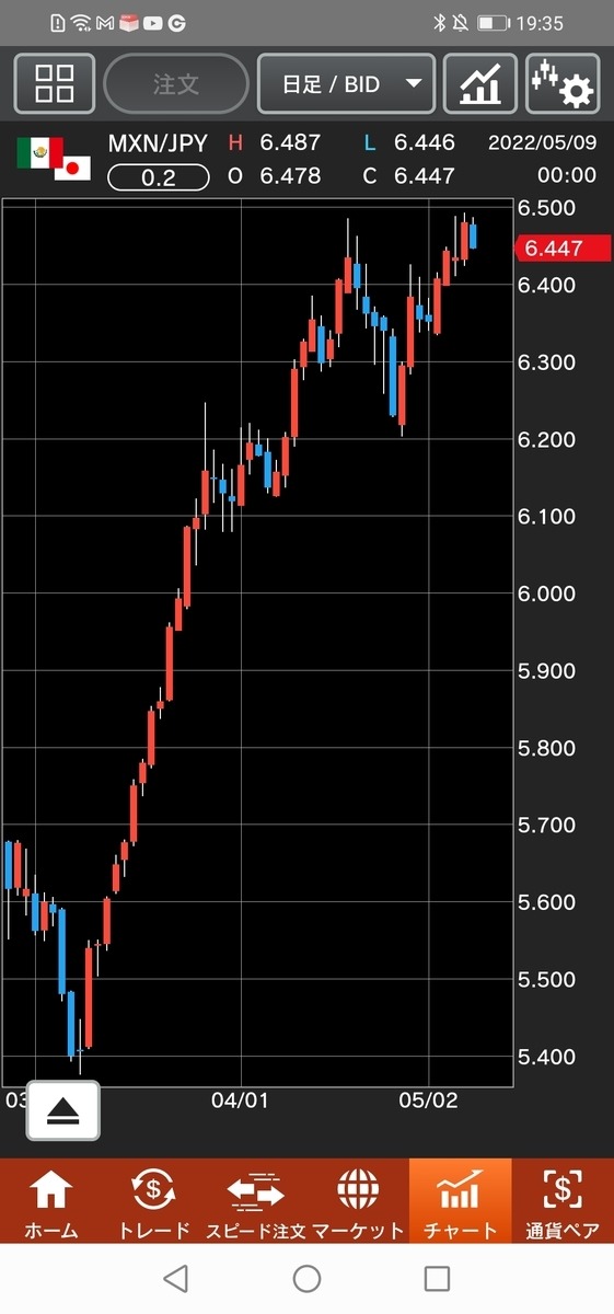 【新興国通貨】中南米通貨は比較的しっかり~メキシコペソ 金曜日の中南米市場は比較的しっかりの展開に。ドルペソは朝方ドル買いの動きに押される形で20.25前後を付けたものの、その後はドル売りペソ買いが優勢となった。午後に入ってもペソはしっかりで、ドルペソは夕方に20.07台を付けている。 昨日のメキシコ中銀金融政策会合は市場予想通り0.5%の利上げ。予想通りとはいえ、積極的な引き締め姿勢がペソ買いを誘っている。 ペソ円はロンドン市場での6円36銭台からじり高になり6円44銭台まで。当初は円売りの動き、午後はペソ買いが支えに。MXNJPY 6.429