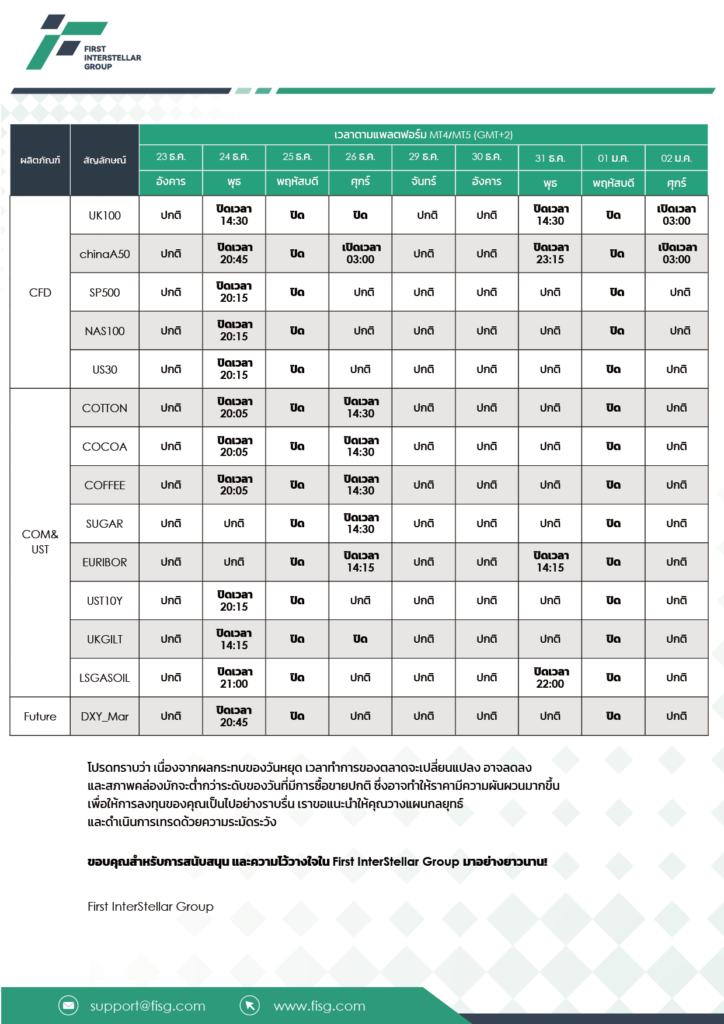 ตารางการซื้อขายช่วง วันหยุดคริสต์มาส และปีใหม่ 2025