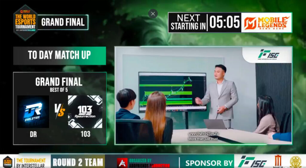 FISG tự hào là nhà tài trợ chính cho Giải đấu The World Esports Tournament #1 do FISG tổ chức, hợp tác cùng Major. Đây là một bước đi quan trọng trong việc hỗ trợ các vận động viên Thể thao điện tử (esports) Thái Lan vươn ra đấu trường quốc tế, đồng thời nâng cao tiêu chuẩn và tính bền vững của các giải đấu. Sự kiện này không chỉ đơn thuần là một giải đấu—nó còn tạo ra một nền tảng để phát triển kỹ năng, truyền cảm hứng cho những tài năng trẻ và định hình tương lai cho những người đang theo đuổi sự nghiệp esports chuyên nghiệp.