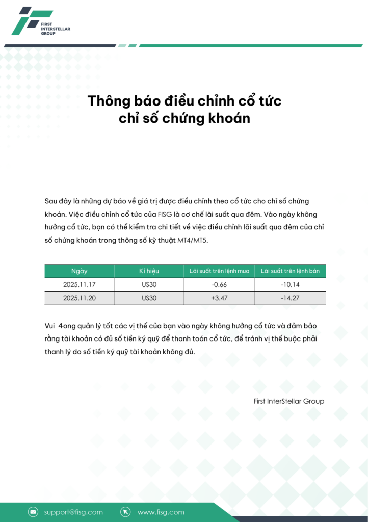 Thông báo điều chỉnh cổ tức chỉ số chứng khoán