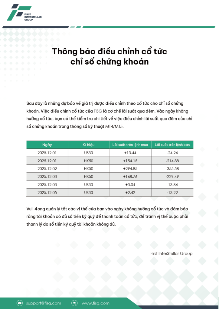 Thông báo điều chỉnh cổ tức chỉ số chứng khoán