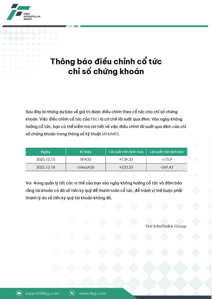 Thông báo điều chỉnh cổ tức chỉ số chứng khoán