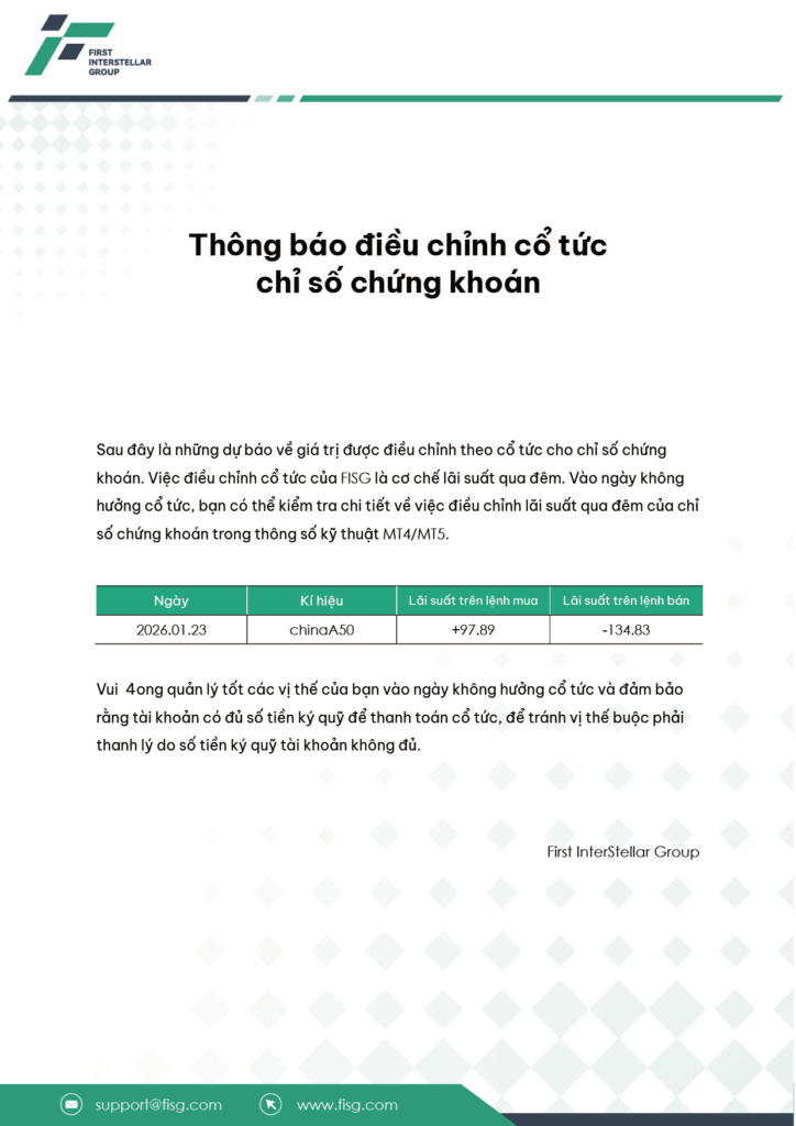 Thông báo điều chỉnh cổ tức chỉ số chứng khoán