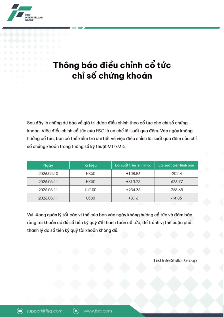 Thông báo điều chỉnh cổ tức chỉ số chứng khoán